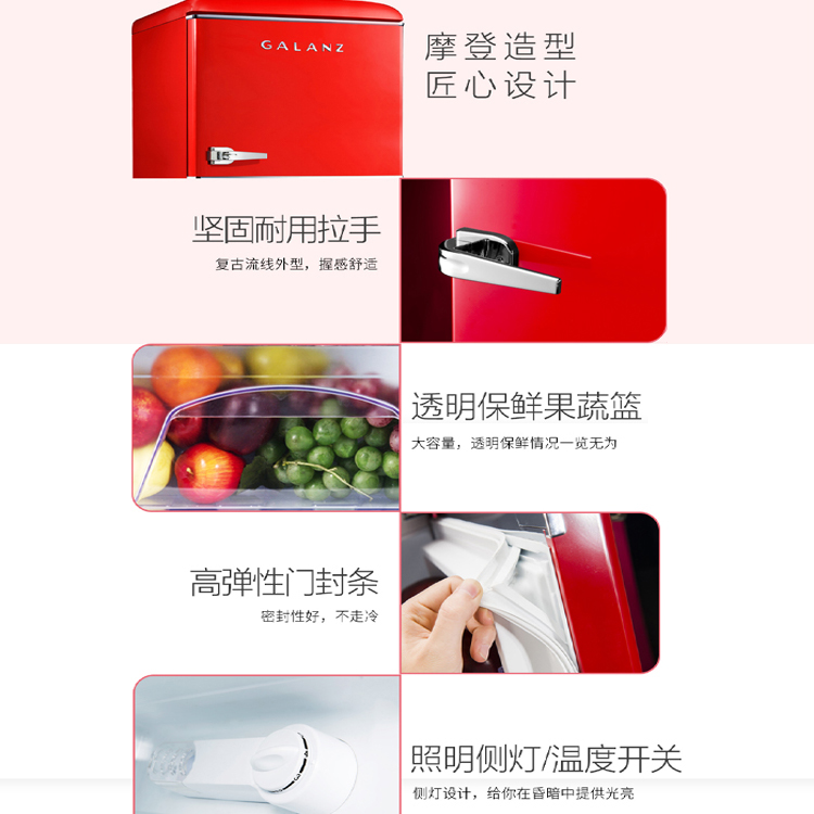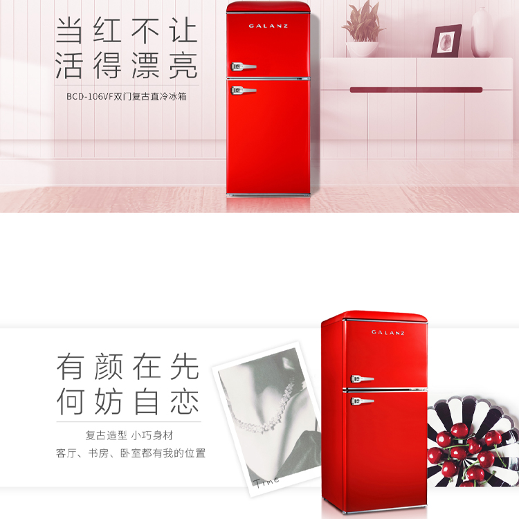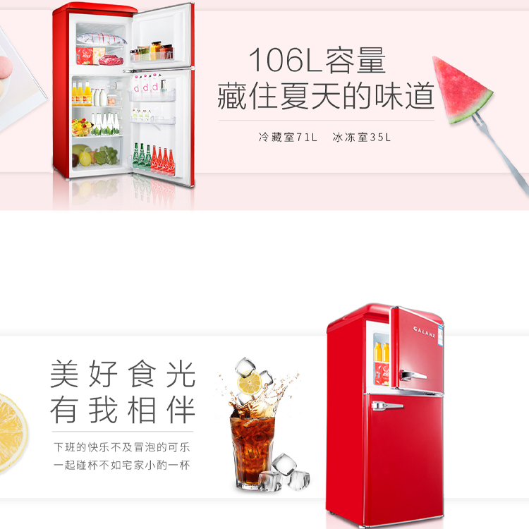 格兰仕 106L复古双门冷藏冷冻冰箱BCD-106VF