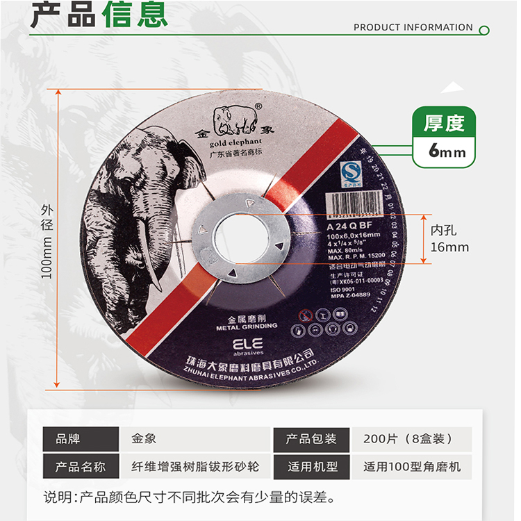 - 型号名称 [金象]打磨片100*6 整箱200片