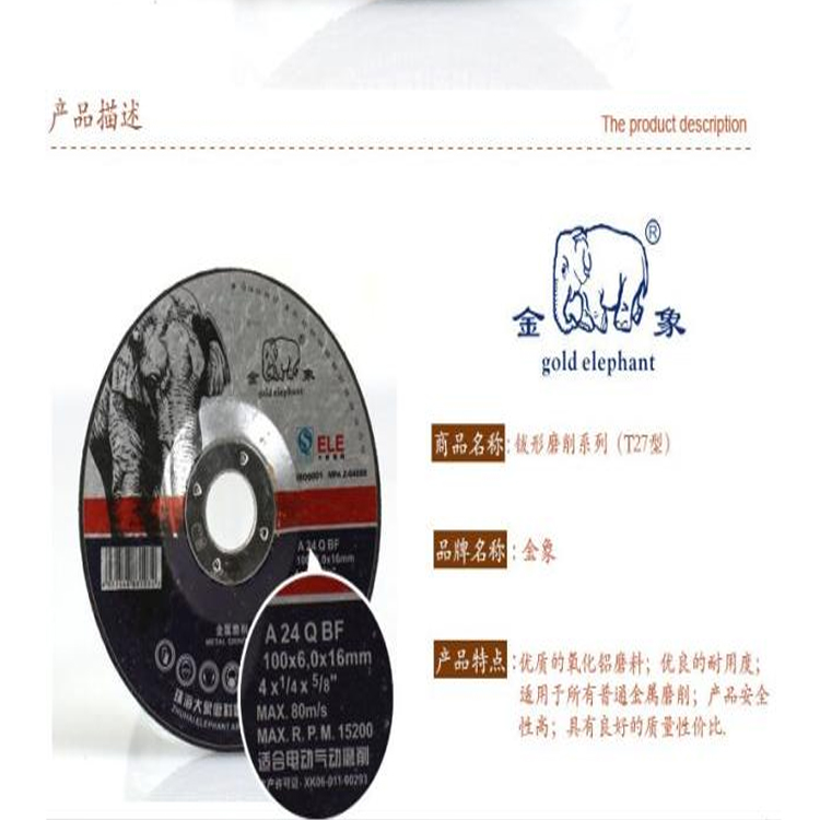 珠海大象钹形砂轮角磨片打磨片采用优质的氧化铝磨料,品质保证。