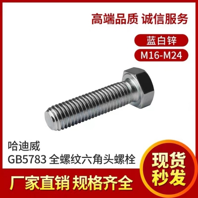 哈迪威8.8级GB5783全螺纹六角头螺杆蓝白锌M16-M24