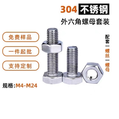 DIN933外六角螺栓螺帽304不锈钢外六角螺丝螺母套装紧固件套装