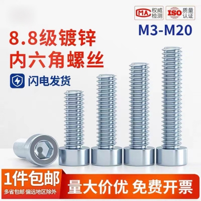 8.8级镀锌内六角螺丝GB70圆柱头全半牙杯头螺钉2.5m3m4m5m6m8m10m12m20