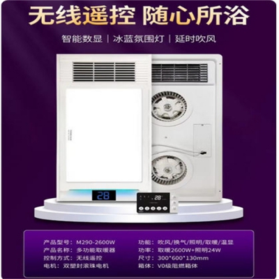 博尔美风暖浴霸LED灯浴室2500W集成吊顶卫生间静音节能暖双核电机