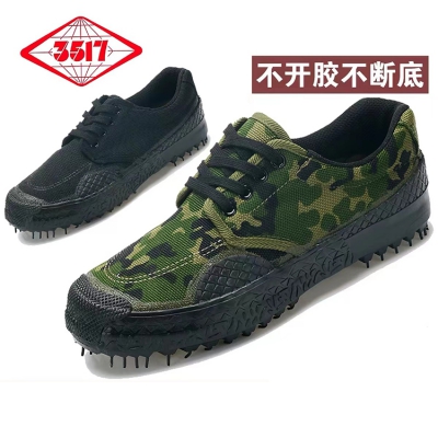 3517解放鞋男夏胶鞋工地建筑干活劳保鞋女防滑军训作训耐磨迷彩鞋35-44码